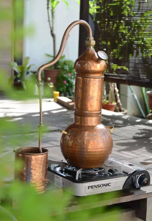 Essential oils and other aromatic compounds are extracted from the plant material when the rising steam passes through it.The steam carrying these compounds is then directed into a condensation apparatus.