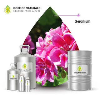 Geranium Essential Oil derived from the leaves and tops of the Pelargonium graveolens plant is a renowned essential oil extracted through steam distillation. Originating from South Africa, this oil is celebrated for its delicate, floral aroma which brings a sense of balance and harmony to any environment. It boasts a clear to pale yellow appearance, reflecting its high purity and quality.